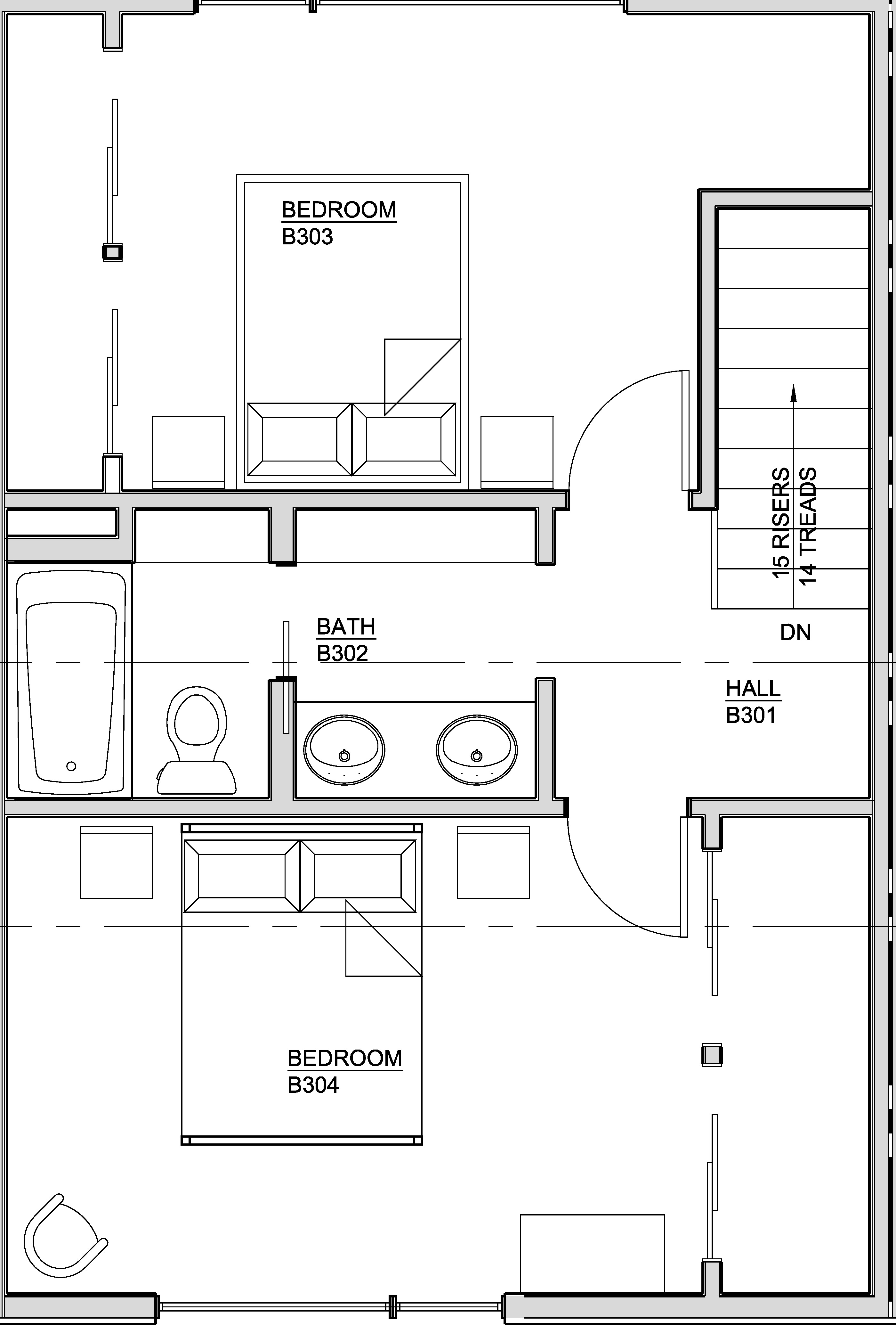 3rd floor -2 sinks in the bathroom are shown, however it has one sink.